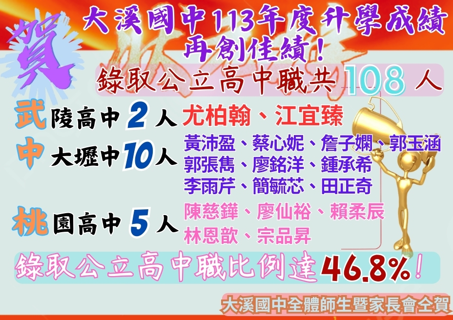 狂賀!!!本校 113 學年度桃連區高級中等學校免試入學~表現優異~全數錄取